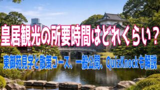 皇居観光の所要時間はどれくらい?東御苑見学の目安や初心者向けの散策コース、乾通り一般公開との違い、QuizKnockの謎解き体験までわかりやすく解説します。東京観光で皇居を効率よく回りたい方におすすめです。