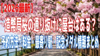 造幣局2026年の桜の通り抜けについて、屋台はどこにあるのか、予約方法や申し込み手順、料金、最寄り駅、記念メダル情報までわかりやすくまとめました。初めて行く方にも役立つように、混雑や事前準備のポイントも解説します。