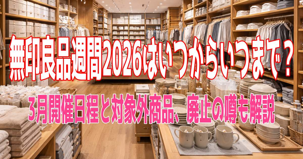 この記事では、無印良品週間2026はいつからいつまでなのかをはじめ、廃止になったという噂の真相、告知は何日前に出たのか、対象外商品や対象外店舗はあるのかまで、まとめてご紹介していきますね。